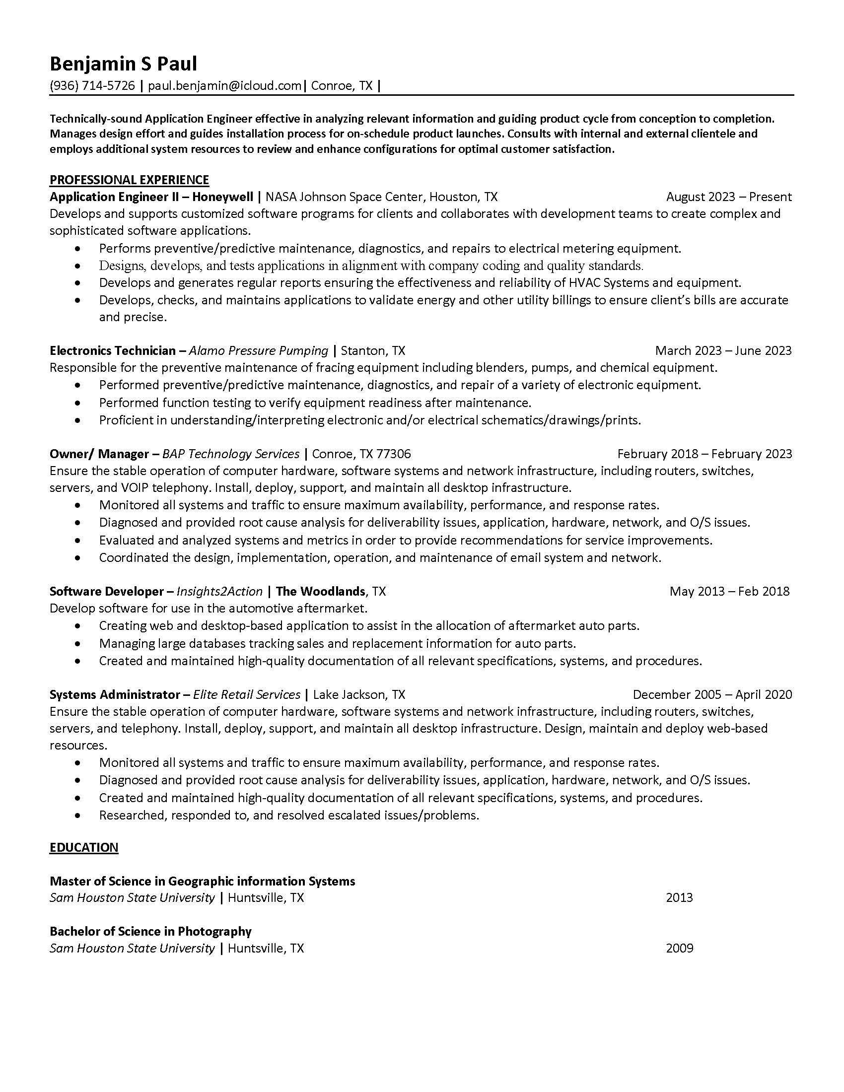 with Honeywell at NASA's Johnson Space Center.